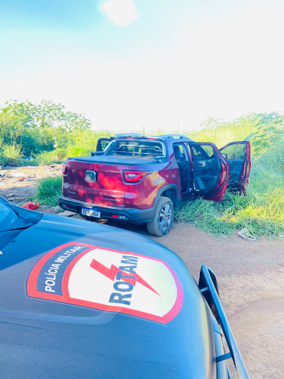 De acordo com a ocorrência registrada pela Polícia Militar, equipes da Rotam faziam patrulhamento pelo Setor Fumal quando desconfiaram da atitude de três homens que estavam em um Fiat Toro, que fugiram em alta velocidade quando perceberam a aproximação da viatura.