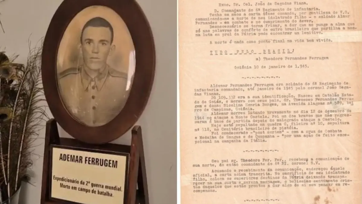 O Mais Goiás teve acesso a uma carta escrita pelo pai do soldado goiano Ademar Fernandes Ferrugem, um dos quase 500 brasileiros mortos na 2ª Guerra Mundial. Ademar foi atingido por uma bala de fuzil no estômago durante a tomada do Monte Castelo, apelidado de “morro maldito”, na Itália – maior feito dos pracinhas no conflito.