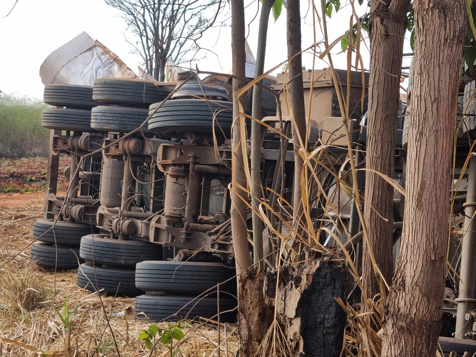 A força do impacto fez com que a carreta atingida saísse da pista, de modo a capotar e parar na faixa de domínio. O condutor, um homem de 34 anos, ficou preso nas ferragens e não resistiu aos ferimentos.