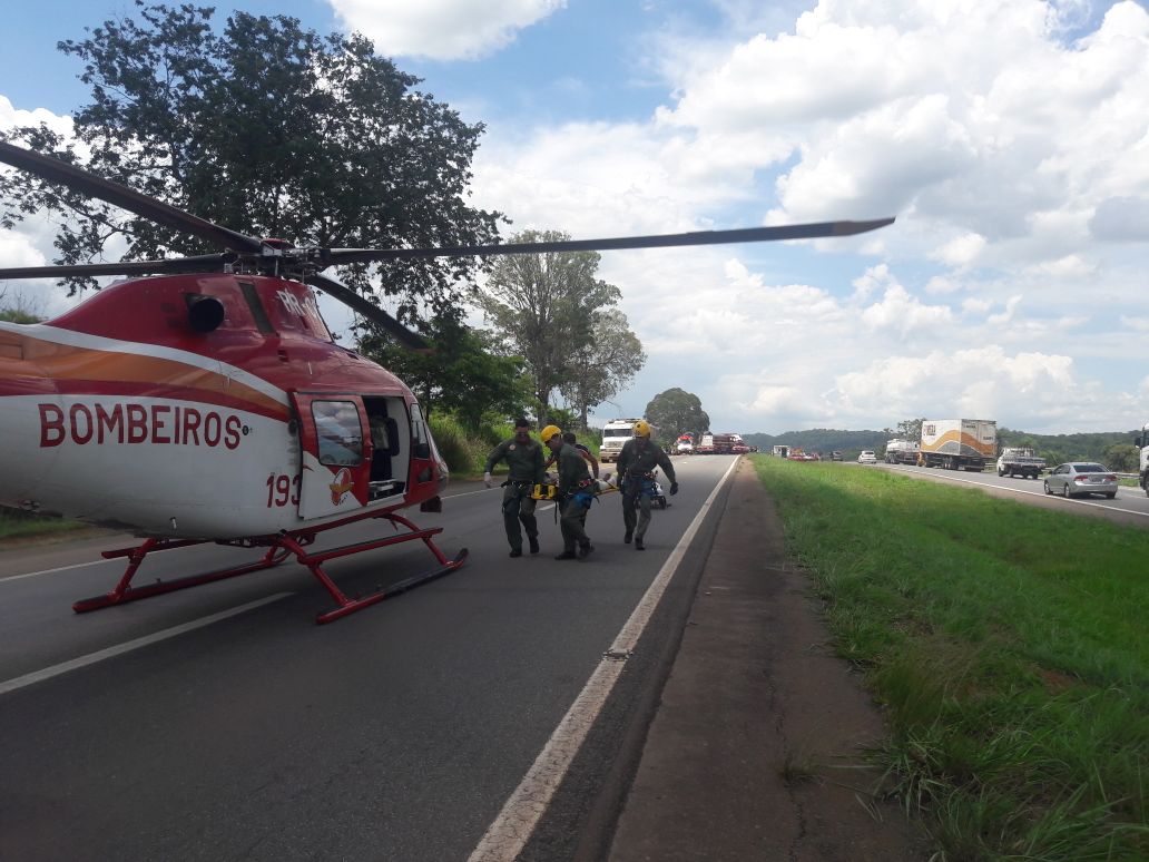 Além da PRF, o Corpo de Bombeiros Militar (CBM) e a Triunfo Concebra atenderam ao acidente. Segundo a concessionária, três vítimas ficaram presas nas ferragens do veículo capotado. Elas foram socorridas pelo helicóptero dos Bombeiro Militar. Ambas as quatro vítimas, ainda não identificadas, foram levadas em estado grave ao Hospital de Urgências de Goiânia (Hugo).