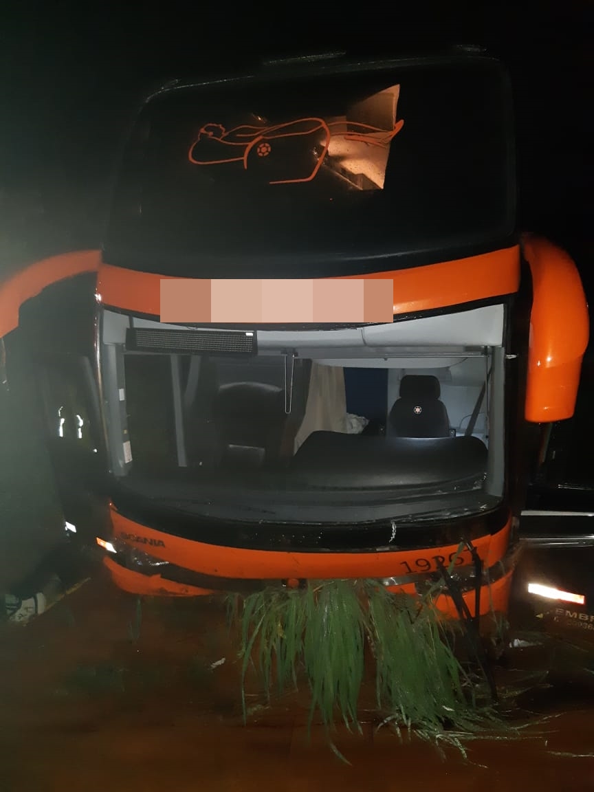 O coletivo, que transportava 40 passageiros, saiu de Brasília com destino a Palmas (TO). O motorista e dois passageiros se feriram