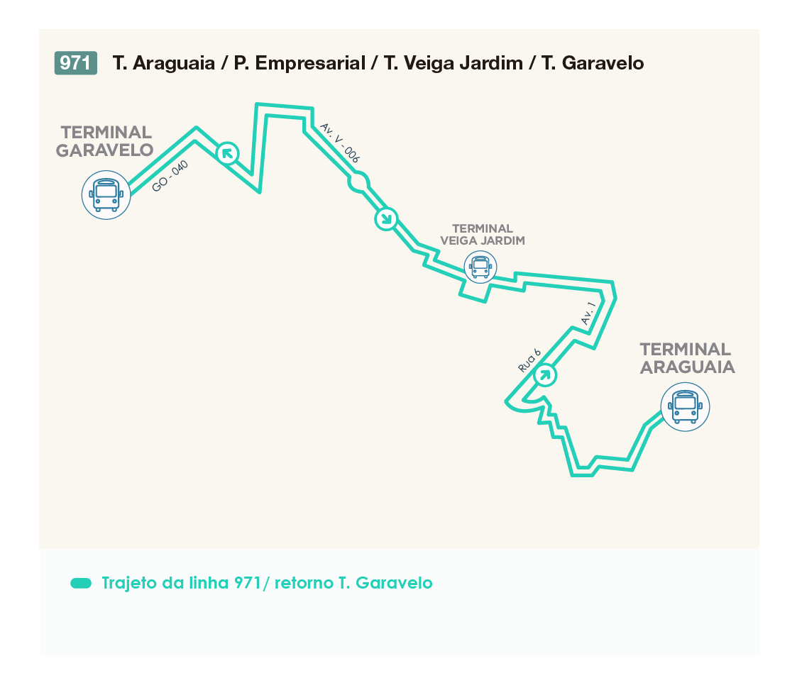 A 971 fará integração entre os terminais Araguaia, Veiga Jardim e Garavelo e ainda passará pelo Polo Empresarial
