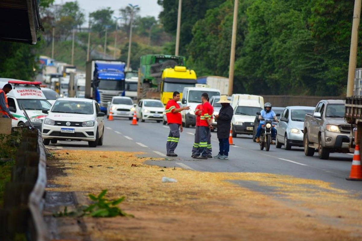 A situação é agravada pelo risco de chuva, que pode complicar ainda mais o cenário. Neste momento, a PRF, os Bombeiros e a concessionária responsável pela rodovia estão concentrando esforços para lidar com as consequências do acidente e minimizar os impactos ambientais. Não há previsão de quando o problema será resolvido.