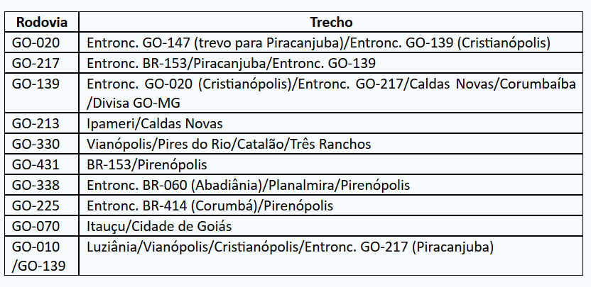 Durante o feriado prolongado do Dia do Trabalhador, a Agência Goiana de Transportes e Obras (Agetop) restringirá a circulação de veículos pesados nos principais trechos que levam a pontos turísticos de Goiás. O objetivo é garantir segurança e conforto aos usuários das rodovias estaduais nesse período.