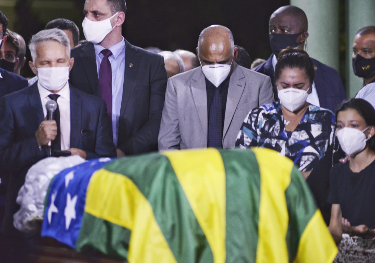 Terminou, por volta das 21h desta quarta-feira (13), o velório do prefeito licenciado de Goiânia, Maguito Vilela (MDB). A cerimônia foi realizada na parte externa do Palácio das Esmeraldas, na capital, e foi marcada por choro e palavras de conforto aos amigos e familiares do gestor. Os populares puderam se despedir do emedebista por um sistema de drive-thru, sem descer do carro. O sepultamento ocorrerá na manhã desta quinta-feira (14), às 9h, no Cemitério São Miguel, em Jataí.