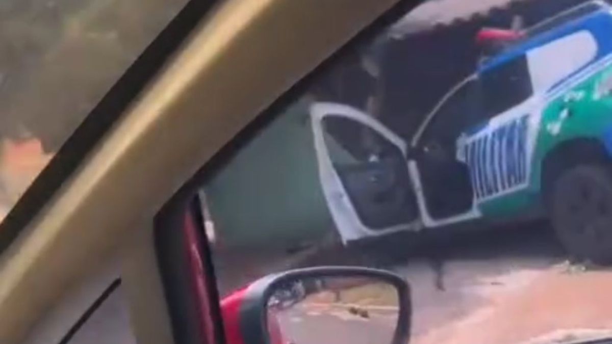Viatura da PMGO perde controle e invade casa durante perseguição em Jataí; veja vídeo