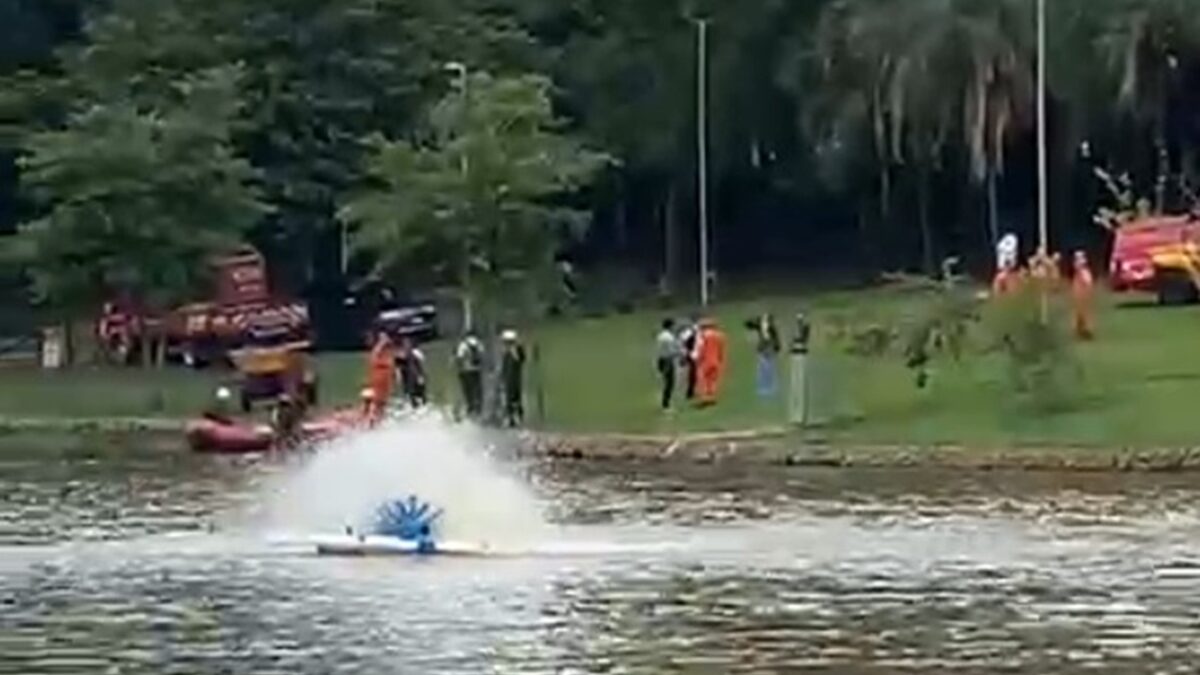 O Corpo de Bombeiros Militar de Goiás (CBMGO) realizou, na manhã desta sexta-feira (7), uma simulação de resgate de vítimas em um carro ilhado no Lago do Parque Vaca Brava, em Goiânia. A ação, que chamou a atenção de quem passava pelo local, fez parte do lançamento oficial da Operação Tempestade 2025/2026, que vai mobilizar mais de 2.400 militares em todo o estado durante o período chuvoso.
