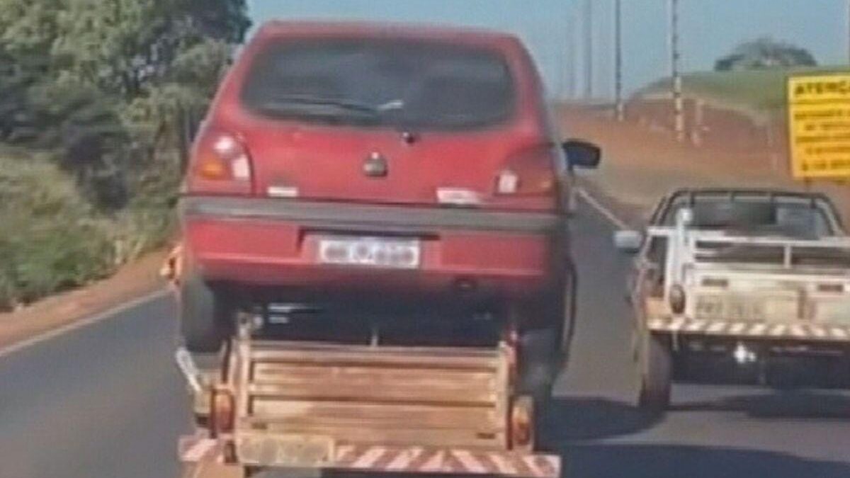 Um vídeo que circula nas redes sociais mostra o momento em que um carro é levado em cima de uma carretinha. O flagrante foi feito na GO-164, em Quirinópolis, na região Sudoeste de Goiás. O motorista ainda não foi identificado.