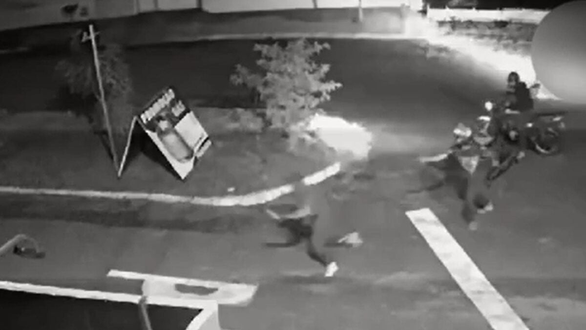 Imagens de dentro do estabelecimento mostram que o autor atira mais algumas vezes contra a vítima, monta novamente na motocicleta e foge.