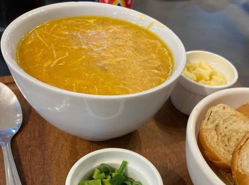 Servidos em porções de 400 ml, os destaques ficam por conta dos caldos de frango, feijão e carne com mandioca, que acompanham cebolinha, queijo ralado, torresmo e torrada.