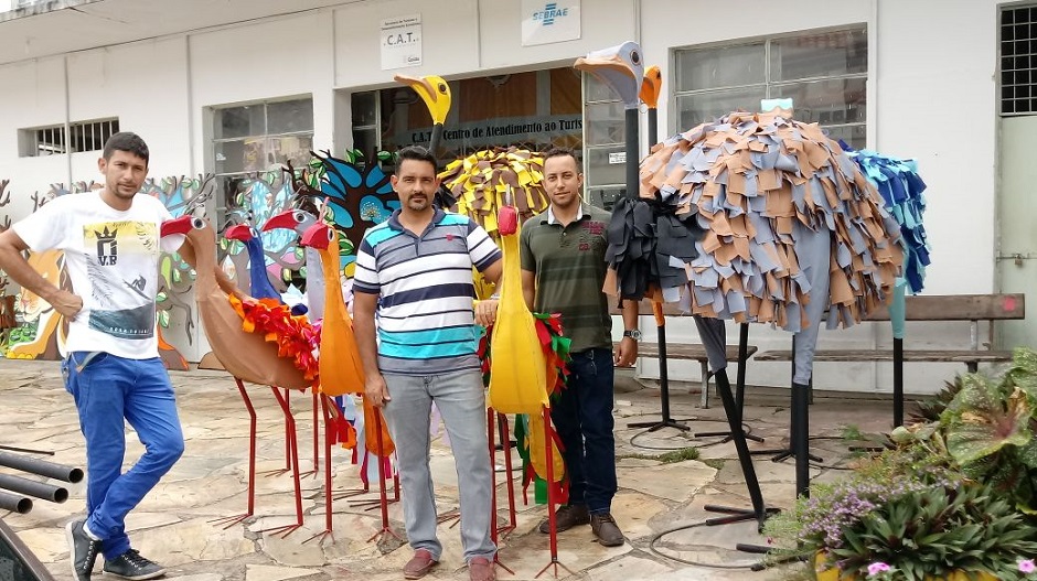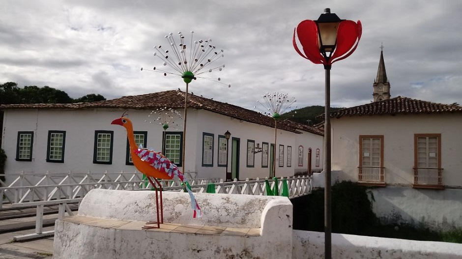 Os lampiões da Praça do Coreto estão enfeitados com flores. “A intenção é que eles sejam a representatividade da flora do cerrado”, disse o artista plástico, que demorou 20 dias para produzir tudo, na Galeria Monte das Artes, da cidade.
