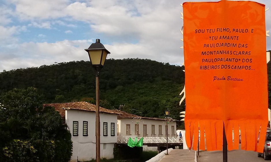 A andança e a pesquisa de Paulo Bertran pelo cerrado foi retratada em totens, durante a orla do Rio Vermelho. Em um dos lados, trechos de poesias, no outro estão as ilustrações da obra do poeta.