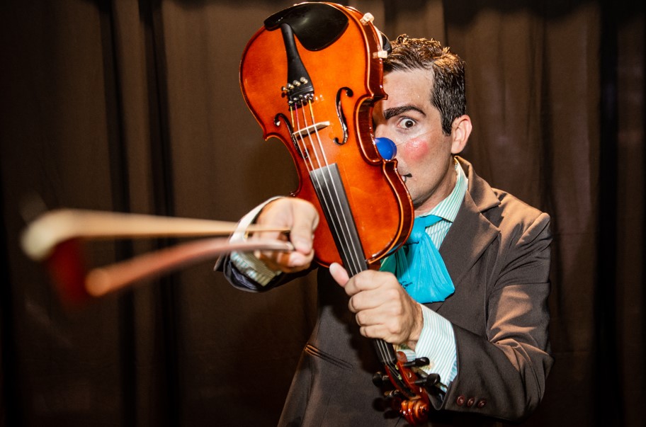 “O Violonista Mosca Morta” é uma peça da Cia Burlesca, que apresenta o palhaço Seu Cocó como personagem principal, interpretado por Pedro Caroca, sob direção de Mafá Nogueira.