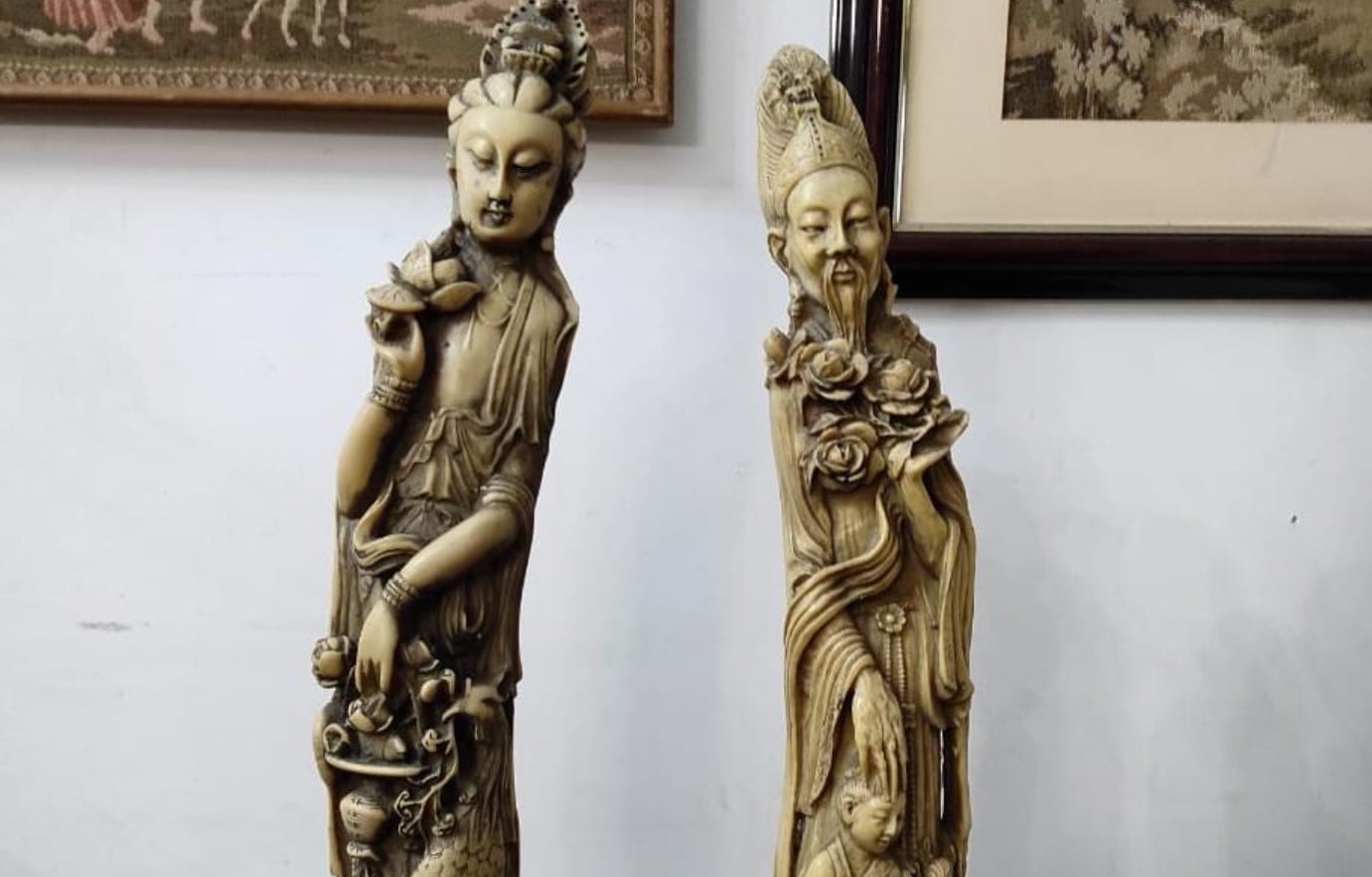 A feira também destaca um abajur em petit bronze com duas cúpulas de vidro, duas esculturas feitas em pó de mármore, pratos de porcelana portuguesa, quadros de pintores diversos, jarras e pratarias e muito mais.