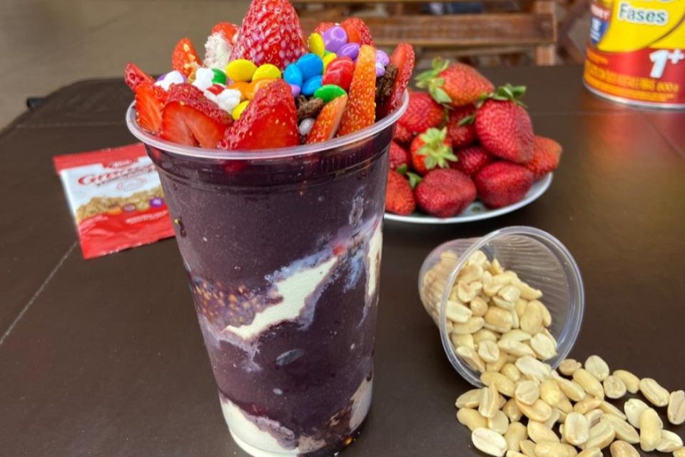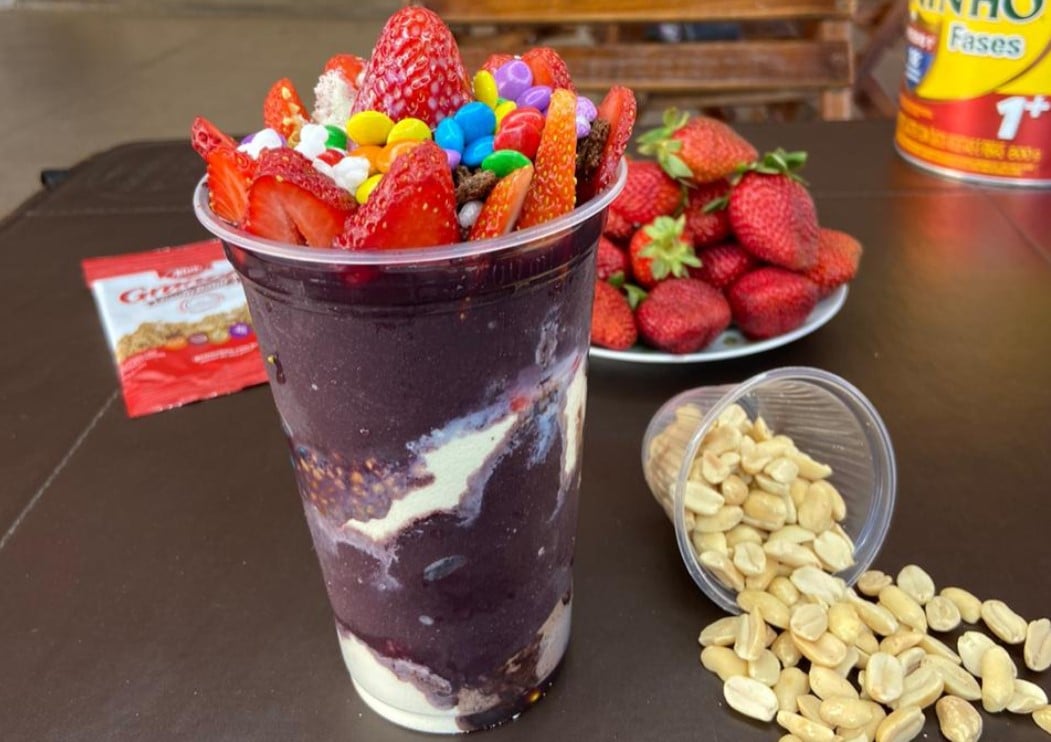 E para quem prefere algo mais puro, a casa também serve o açaí sem xarope de guaraná e sem açúcar, sendo possível escolher os adicionais de sua preferência.