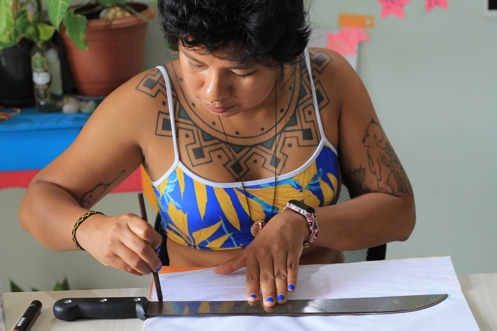 Katiúscia Costa é professora da Educação Intercultural Indígena da UFG, mestre em Direitos Humanos e artista intuitiva.