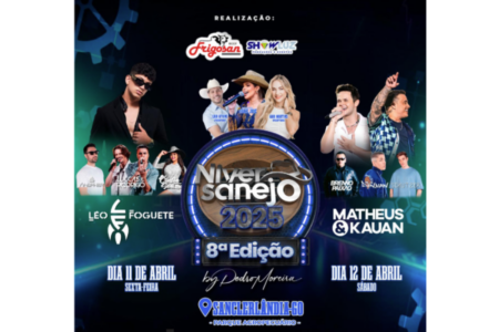 ANOTE AÍ Festival Niversanejo acontece nos dias 11 e 12 de abril com artistas de sucesso Acontece nos dias 11 e 12 de abril de 2025 o Niversanejo, festival mais aguardado… há 10 mêss