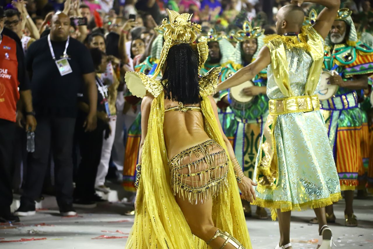 Paolla também explicou que sua fantasia é uma homenagem à Cleópatra, a rainha do Egito, e também ao pai de santo Joãozinho da Gomeia, tema do enredo da escola caxiense.
