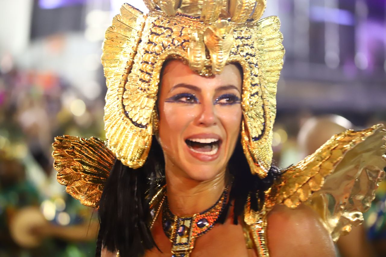 Paolla Oliveira, rainha de bateria da Grande Rio, retorna à Sapucaí homenageando Cleópatra (Foto: Daniel Pinheiro/AgNews)