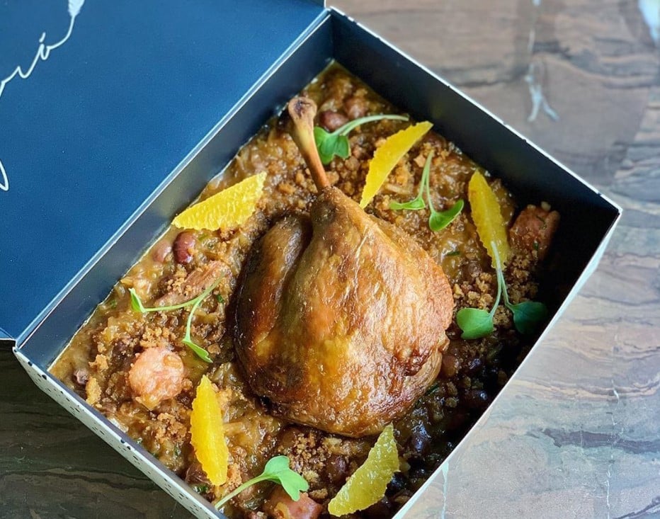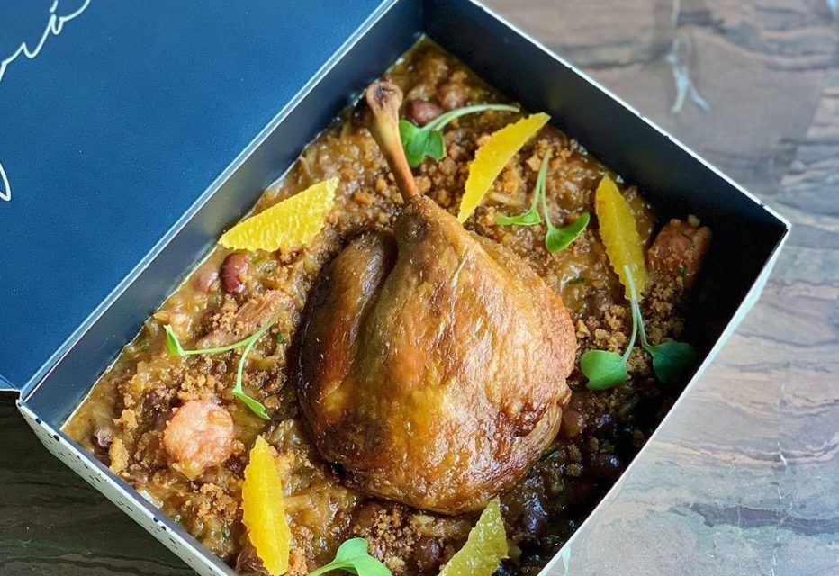 Entre os clássicos da casa, estão o arroz meloso de pato, bisteca de porco duroc e gnocchi de mandioquinha. O restaurante trabalha também atendendo aos pedidos do iFood e oferece retirada no balcão.