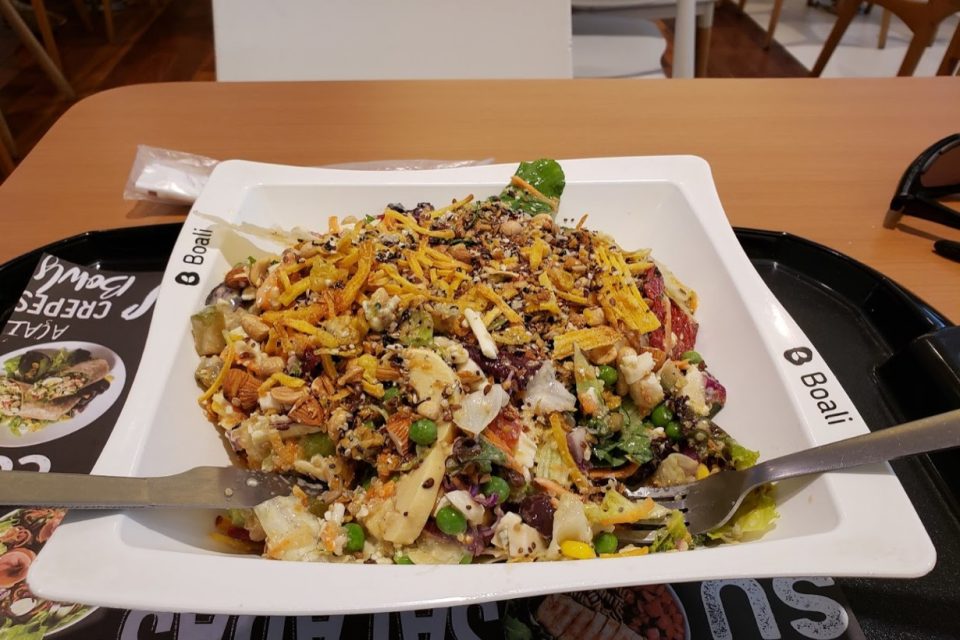 Além das saladas, com opção de montar a sua do jeitinho que preferir, ainda dá para encontrar tapiocas, omeletes, crepiocas, wraps, açaí e muito mais. Uma delícia!