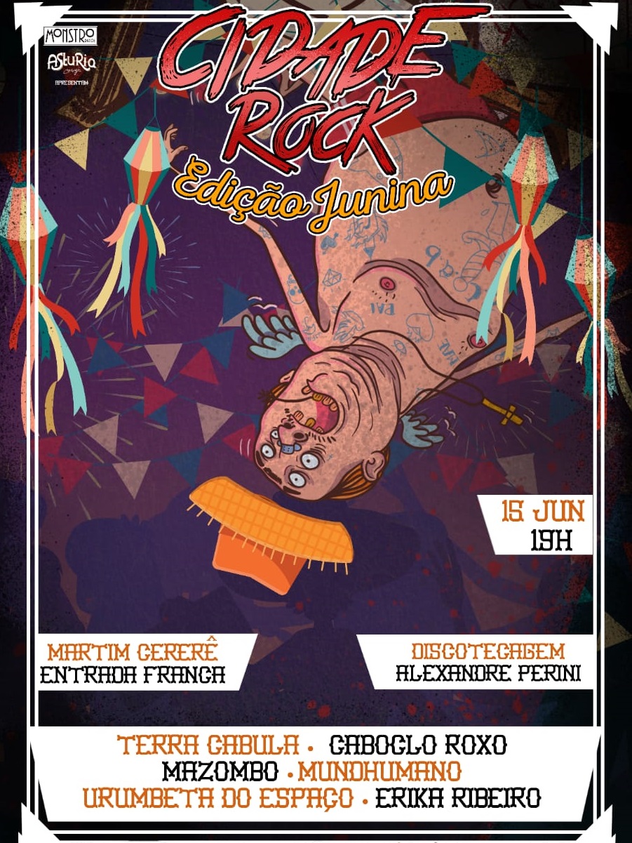 O festival ‘Cidade rock’ terá em sua sexta edição uma programação junina, com rock, música regional, folclórica, caipira e ritmos afro-brasileiros. O evento acontecerá neste sábado (15) e contará com decoração, comidas típicas e brindes para quem for vestido a caráter. A música ficará por conta de Terra Cabula, Caboclo Roxo, Mazombo, Mundhumano, Urumbeta do Espaço e Érika Ribeiro.