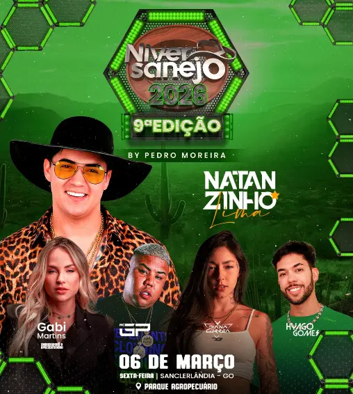 A cidade de Sanclerlândia, no interior de Goiás, recebe nesta sexta-feira (6) a 9ª edição do Niversanejo, evento que reúne música e atrações voltadas ao público sertanejo e de funk. A festa está marcada para começar às 22h e deve reunir moradores da região em uma noite de shows e entretenimento.
