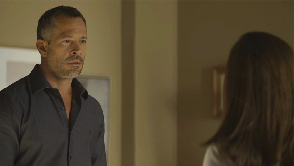 “Cássia, eu não sou a namorada do seu pai. Estou longe de ser. É isso que você precisa saber, Cássia. Seu pai é gay”, destila Fabiana para a estudante, assim que a menina dá de cara com Leandro.