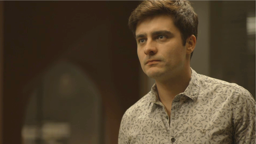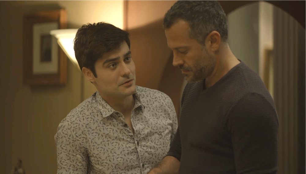 “O que você disse… que tem um sentimento especial por mim… é pela dívida? Mas antes… me diga… eu sou um homem, você é um homem… eu não esperava que você tivesse interesse por mim”, questiona o empresário.