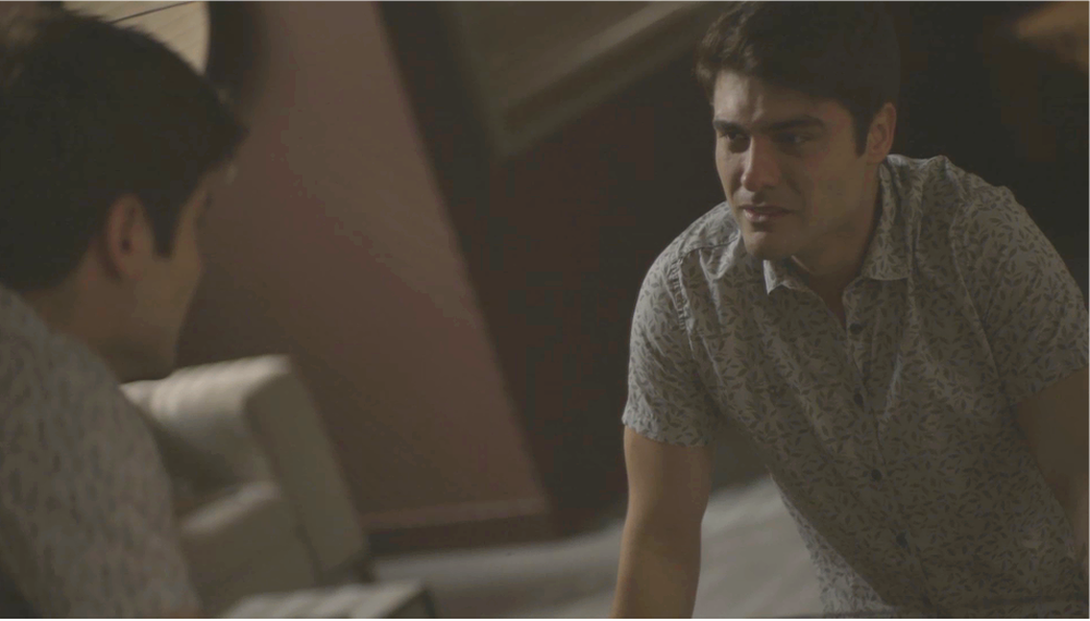 “Eu aprendi a gostar de você… a admirar você. Eu sei que é um grande empresário, que patrocina o Rock, mas, pra mim, é só o Agno. Eu gosto do Agno… como gente. Eu desde pequeno sabia que era diferente. Eu nunca… namorei de verdade… só as coleguinhas de escola, você sabe como é… mas… eu tinha dúvidas até te conhecer. Mas a sua generosidade… mexeu comigo. Esse sentimento foi surgindo. Eu fico triste de ver você triste… pelo Rock, que não quer saber de você”, desabafa Leandro.