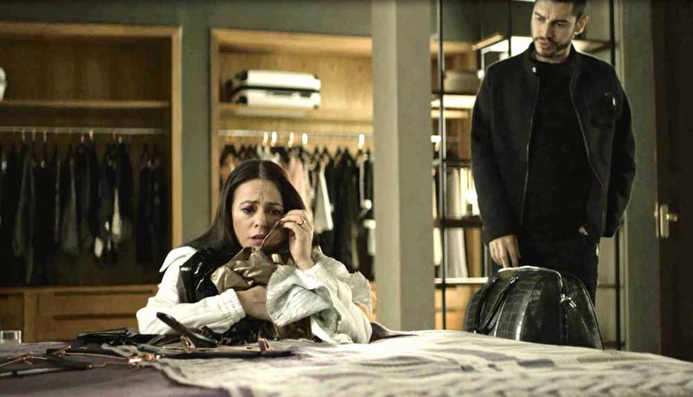 A digital influencer vai para o quarto e se depara com as roupas picotadas. Horrorizada, ela diz para Camilo: