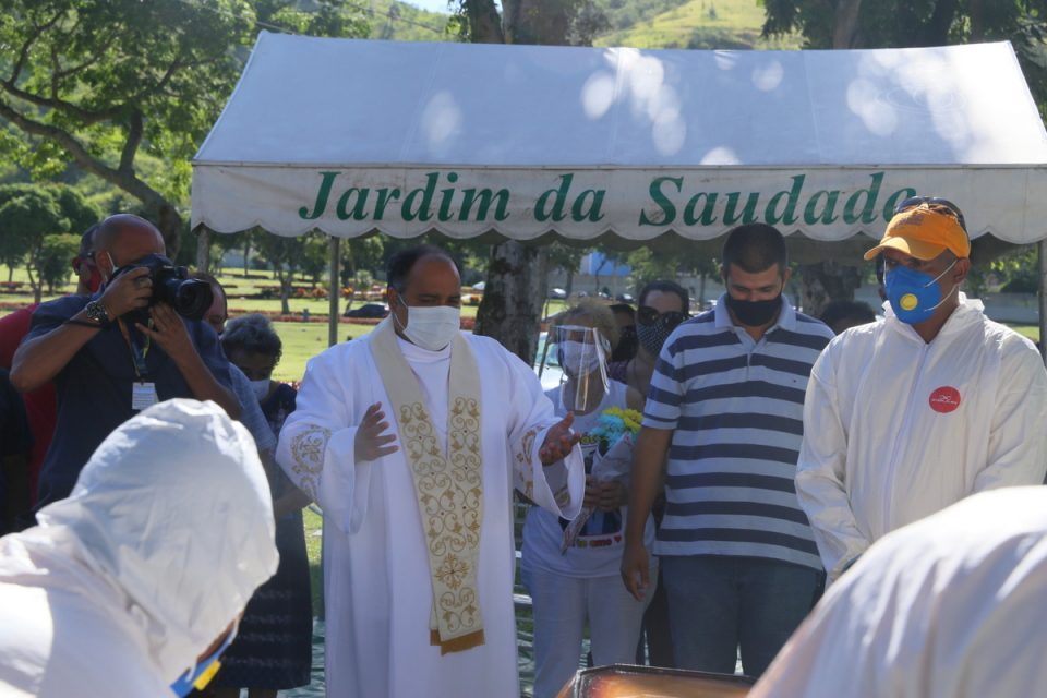 O corpo de Agnaldo Timóteo foi enterrado no cemitério Jardim da Saudade, na zona oeste do Rio, neste domingo (4). O cantor morreu no sábado (3), aos 84 anos, após 17 dias internado com Covid-19.