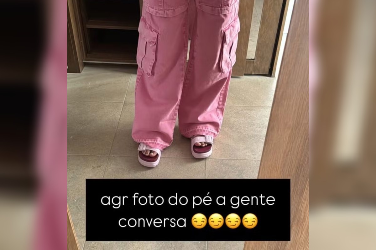 Ana Castela finalizou com humor, postando uma foto de chinelos, fazendo referência a fetiches em plataformas adultas. “Agora a foto do pé a gente conversa”, brincou.