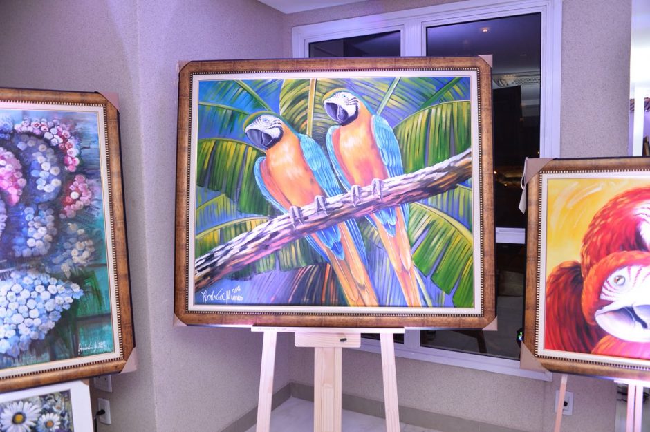 Na exposição, via-se imagens de araras, tucanos e outros animais da fauna brasileira. Nunes, que também é pecuarista, buscou despertar consciência ambiental com as obras. Aliás, natureza é sempre um tema recorrente nas obras da artista. “Já pintei boiadas, flora, e telas com temas marítimos”, conta.