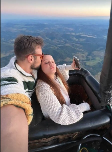 Já na manhã desta segunda-feira (19), o casal fez um passeio romântico de balão em Pirenópolis, Goiás. Nos registros, os dois aparecem se beijando e também trocando carícias. Em seguidas, foram tomar café da manhã.