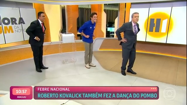 O apresentador Roberto Kovalick é um bom pagador de promessas e nesta terça-feira (6) ele pagou uma que fez com a equipe do Hora 1 na semana passada. Ele tinha prometido fazer a coreografia da “Dança do Pombo” ao vivo e a cores no telejornal, caso Richarlison marcasse um gol contra a Coreia do Sul.