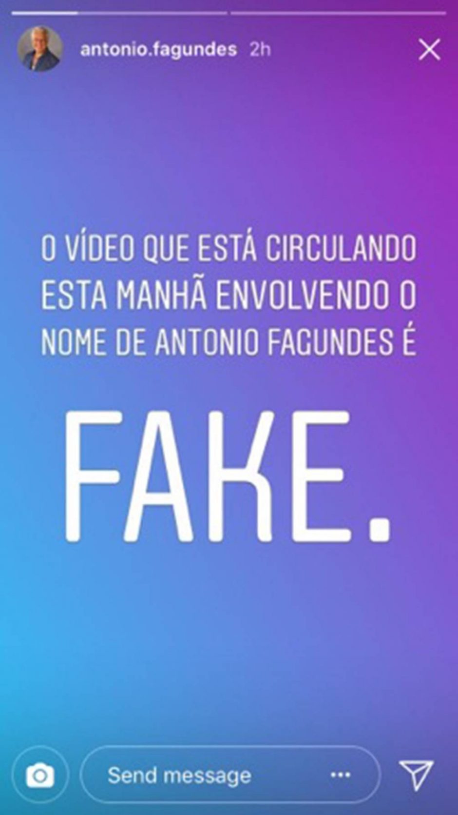 A esposa do ator, Alexandra Martins, afirmou ao jornal Extra que ela e Fagundes tiveram conhecimento do vídeo assim que o mesmo viralizou. “Não foi e nem será a última fake news envolvendo o Antônio. Dá para ver claramente que não é ele”, disse. Com o auxílio da Rede Globo, eles procuram as medidas cabíveis para retirar as imagens do ar. “Em breve sairá uma nota oficial sobre o caso”, completou.