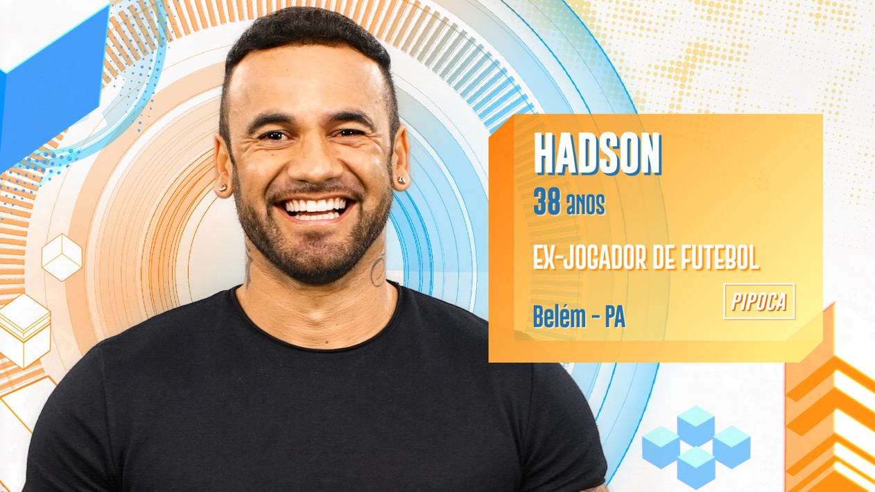 Ex-jogador de futebol, 38 anos e natural de Belém do Pará. O participante Hadson é falastrão e marrento, mas garante que se dá bem com qualquer tribo. Viajado, o brother já jogou bola profissionalmente e pretende levar a mesma competitividade da época de atleta para o reality show. Ele faz parte do grupo Pipoca no BBB 20.
