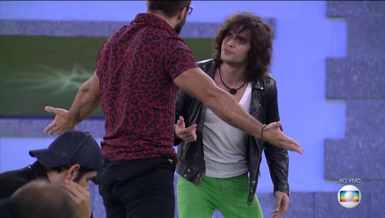 Então os dois se levantaram e Caio se posicionou entre os brothers enquanto João segurava Fiuk. O artista chamou Arthur de covarde, e depois disso o professor mineiro sentou entre os dois para separá-los.
