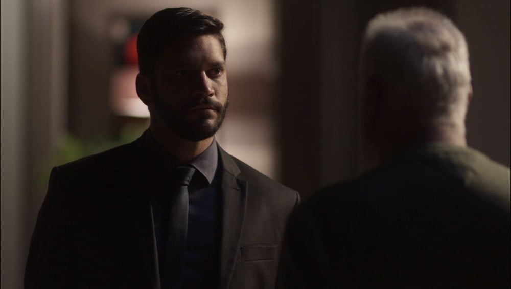 “Sou eu, Diogo. Eu estava te esperando. Sei que foi você que armou tudo isso. Você sabia muito bem que aquele vídeo dos bandidos era falso. Conta a verdade, seu miserável!”, diz Alberto.