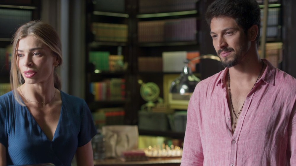 De volta ao Rio de Janeiro, ele chega na mansão, flagra uma conversa do pai com Paloma (Grazi Massafera) e trata logo de dar a boa notícia: