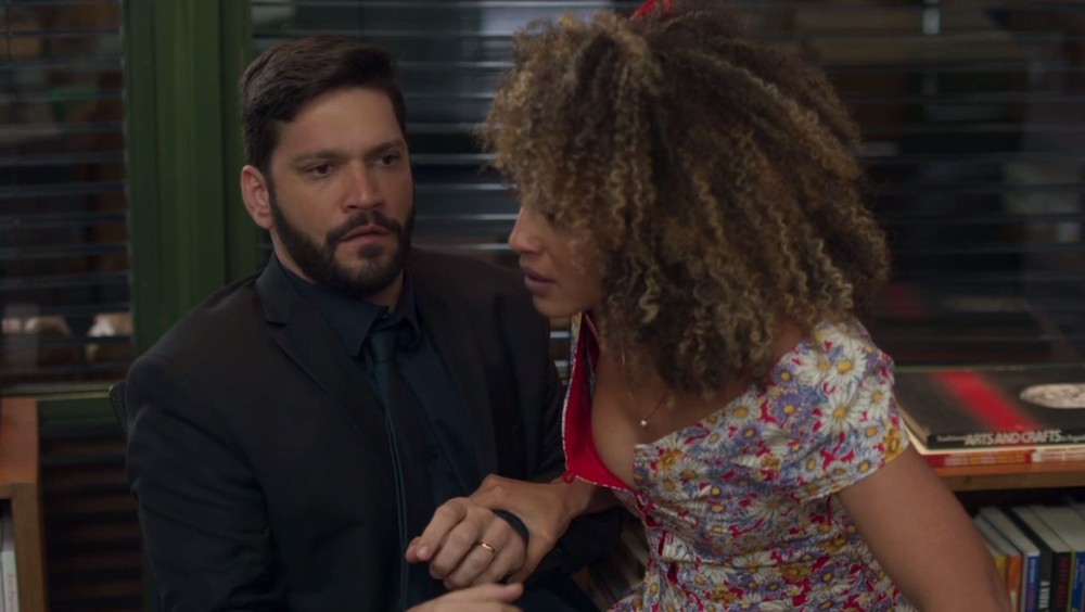 Gisele (Sheron Menezzes) e Diogo (Armando Babaioff) não têm a menor noção do perigo. E os dois aproveitam que estão sozinhos para namorar na Prado Monteiro nesta sexta-feira, 27/9, em Bom Sucesso.