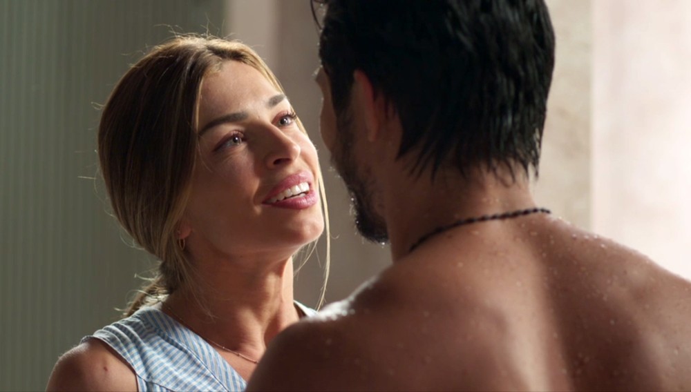 Bom Sucesso: Paloma é surpreendida por Marcos sem toalha, e os dois se beijam