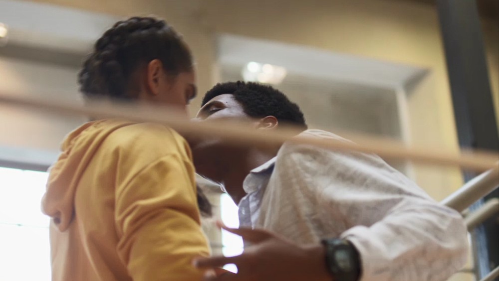 O rapaz vai atrás da garota na escada da escola e diz que quer ficar sozinho com ela. Ele a encara e rouba um beijo da espevitada filha de Paloma (Grazi Massafera), que empurra o rapaz e fica indignada.