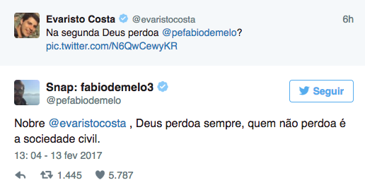 Evaristo postou, em seu Instagram, uma foto “cochilando”, reclamando do sono que todos nós, seres humanos, sentimos às segundas-feiras. “Me acorda amanhã. Boa semana”, escreveu o jornalista. Pe. Fábio de Melo, então, brincou: “Pelo amor de Deus, Evaristo! Acorde! O Jornal é HOJE!”. O comentário logo foi rebatido: “Preguiça é pecado, né padre? Tenho pecado todas as segundas-feiras. Orai por mim. Boa semana”.