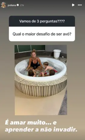 Ao responder a seguidores nas redes sociais, Poliana resumiu a experiência em uma frase direta: “É amar muito… E aprender a não invadir”. A declaração foi acompanhada de uma foto ao lado dos netos, em um momento de lazer.