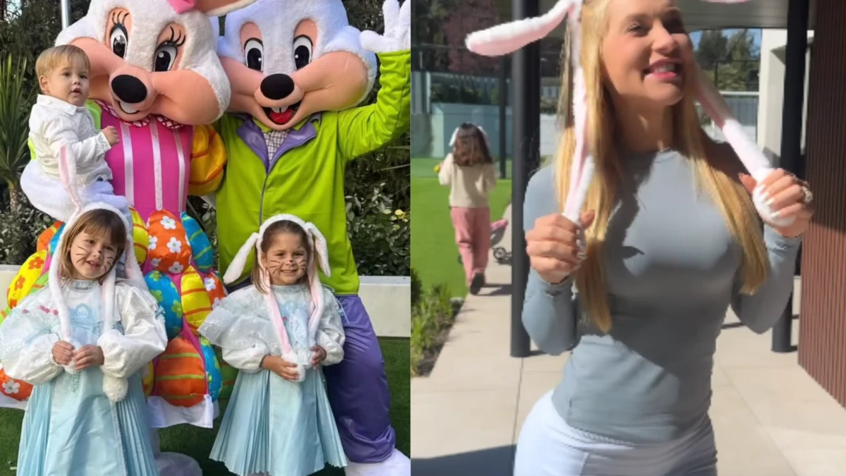 Virginia faz festa de Páscoa em mansão de Vini Jr em Madri com caça aos ovos e coelhos gigantes