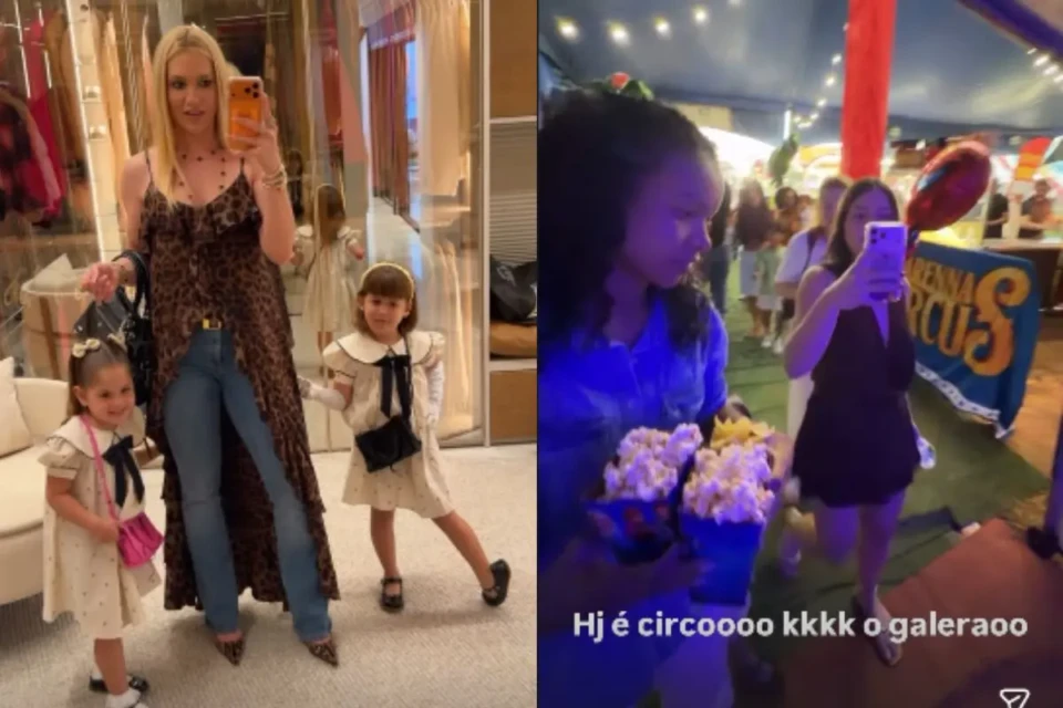 Os vídeos que ela postou mostram os pequenos Maria Alice, Maria Flor e José Leonardo, um ambiente rodeado de cadeiras vazias, e amigas como a ex-cunhada Monyque Isabella e a também influenciadora Duda Freire.