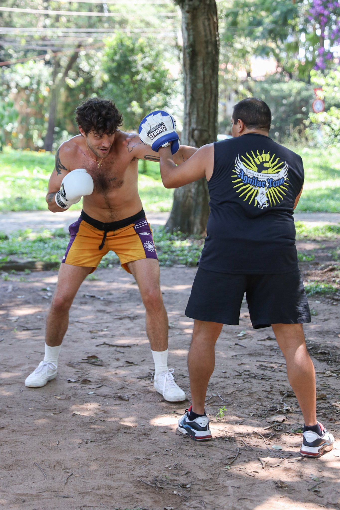 No último sábado (22), o ator Chay Suede, 29 anos, foi fotografado enquanto treinava boxe em São Paulo. Acompanhado do instrutor, Chay foi clicado sem camisa em uma praça no bairro Alto de Pinheiros. O artista pratica o esporte há alguns anos e costuma compartilhar nas redes sociais registros dos treinamentos.