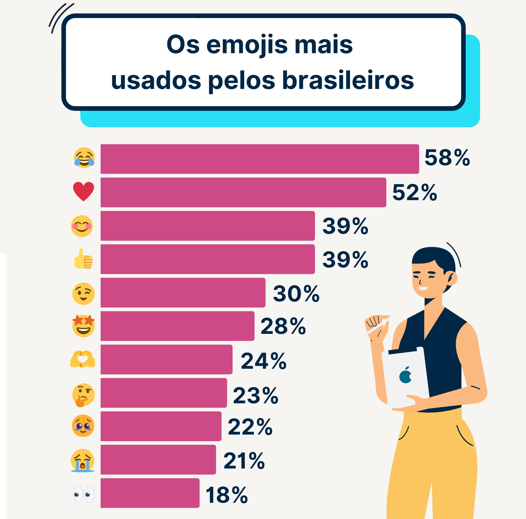 O estudo constatou ainda que, para 52% dos entrevistados, essas ferramentas (emojis, figurinhas e GIFs) dão um toque de humor às conversas. Além disso, 49% acreditam que as mensagens se tornam mais envolventes, enquanto 47% sentem que conseguem se expressar mais rapidamente do que com palavras.